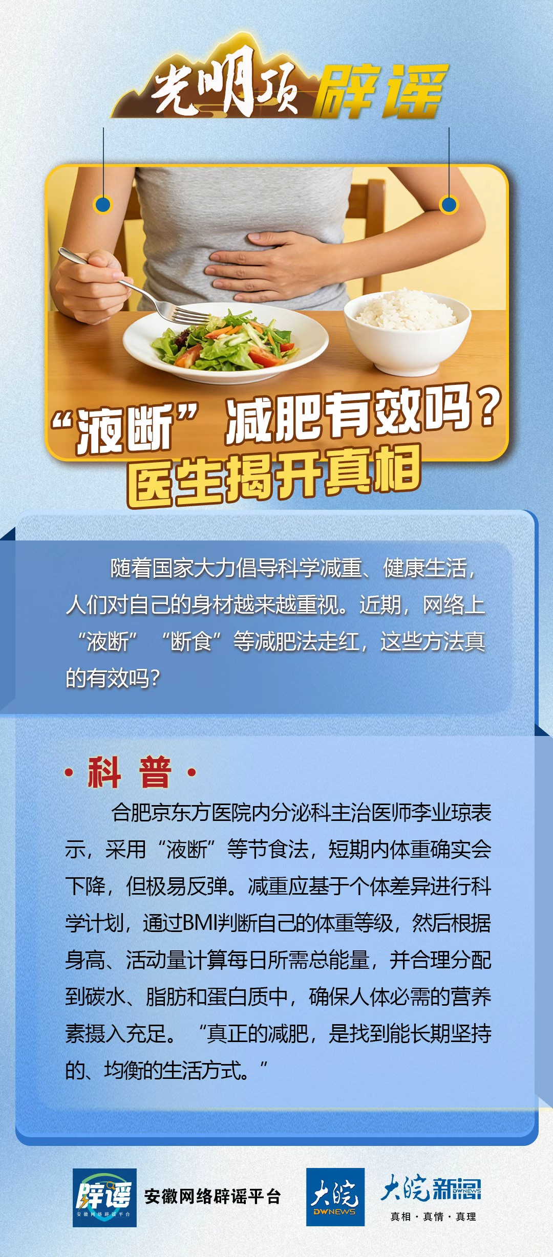 大皖新闻讯随着国家大力倡导科学减重,健康生活,人们对自己的身材越来越重视。近期,网络上“液断”“断食”等减肥法走红,这些方法真的有效吗?