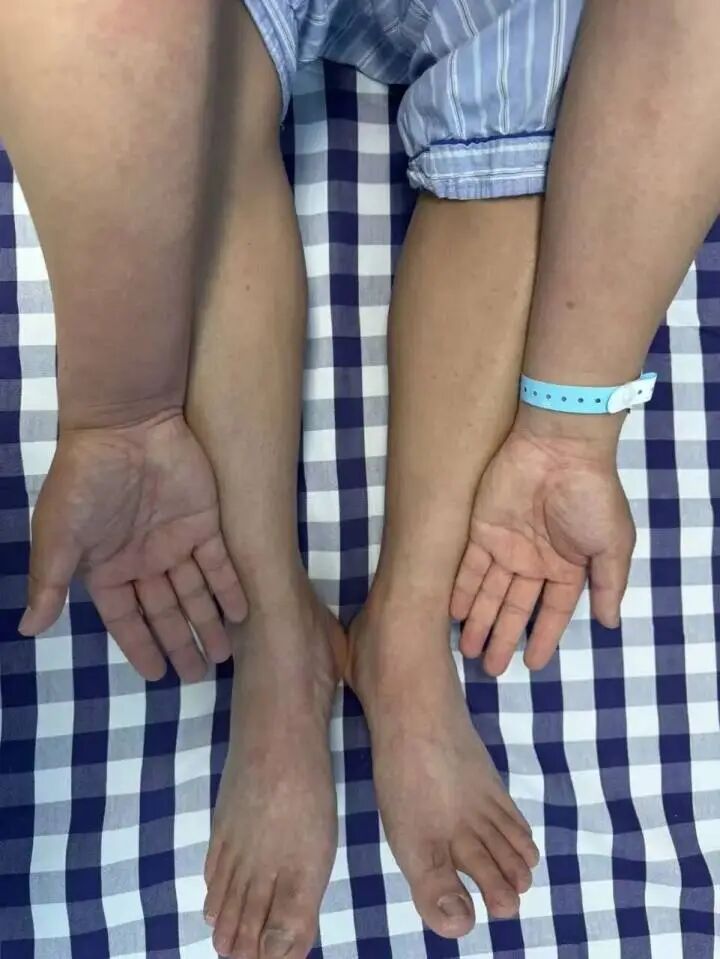 两天后,皮疹已经蔓延到了陈先生的四肢,腹部和脚踝部位都泛红了,当地医院遂将他转至杭州市中医院皮肤科接受治疗。