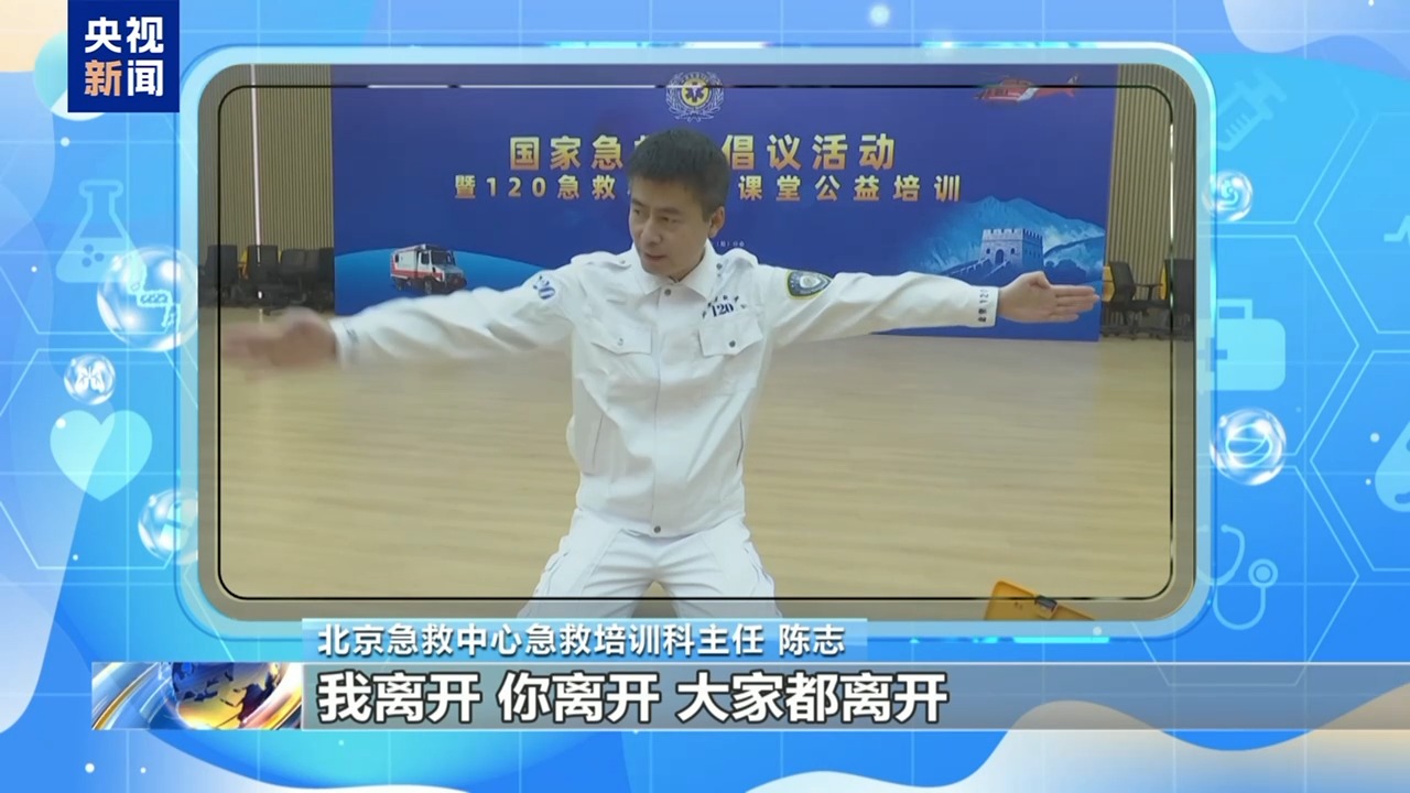 北京急救中心急救培训科主任 陈志:AED一旦到达现场,我们首先让AED进行工作。开机以后,按照它的提示进行操作。AED一旦开机不要关机,要持续抢救,直到专业人员到达现场。