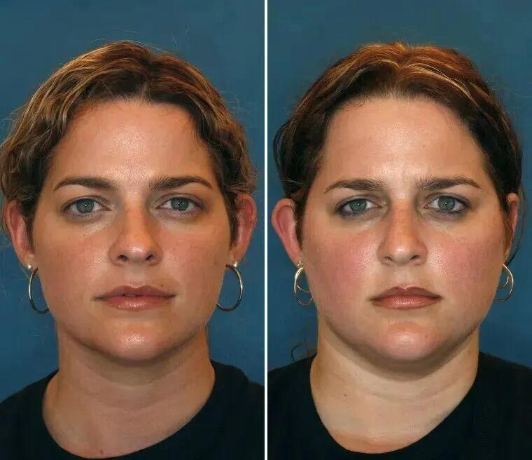 左图是迪娜,她的日晒时间明显多于右图的吉娜。迪娜的肤质感觉要差一点,但日晒造成的损伤还没有完全显现出来(还有一个原因,迪娜更瘦,下颌线清晰、颧骨有立体感,显得面容年轻)。