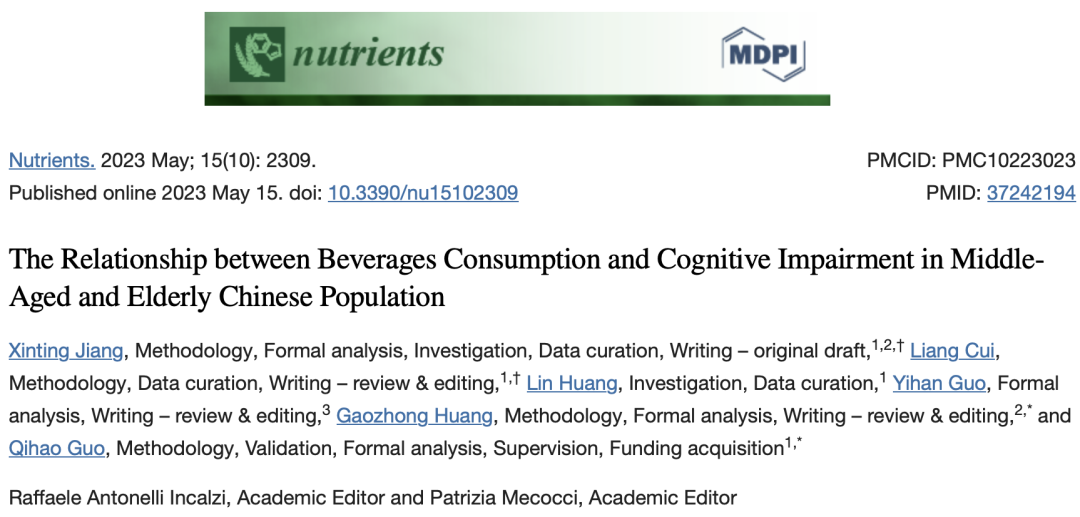 2023年,发表在国际期刊《营养素》(Nutrients)上的研究显示,对于患有轻度认知障碍的中老年女性,纯牛奶是认知障碍的保护因素。与不经常喝纯牛奶的人相比,经常喝纯牛奶的轻度认知障碍女性罹患阿尔茨海默症的风险明显下降了60.8%。