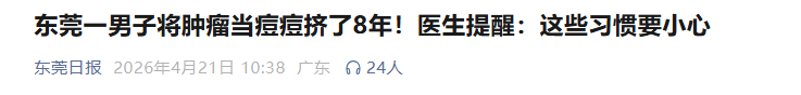 “刚开始真没当回事,不疼不痒,就以为是上火长的痘,平时没事还总用手去抠、去挤。”他回忆。
