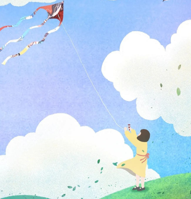 我看见一个扁鼻子的小姑娘,一边焦急而气恼地扯着线拐上纠结在一起的绳索,一边眼巴巴地、无可奈何地望着她那个因为线绳的故障眼看就要落下来的风筝。我还看见她的眼睛里闪着泪花,鼻尖儿上渗满了汗珠。她这时的心绪,我有多么熟悉啊!微笑不由地浮上我的嘴角。当我正要上前帮助她的时候,跑过来了一个大一点的女孩子,俊俏、美丽。她熟练地扯开那些纠葛在一起的绳索,敏捷地从手里放了出去。往下降落的风筝停住了,好像停在那里思索了一会儿,又飘飘摇摇地往那蔚蓝色的天空上飞去。引人遐想的,蔚蓝色的天空啊……我巴不得自己也变成一支风筝,乘着轻风,沐着阳光,悠然自得地飘在蓝天之上。