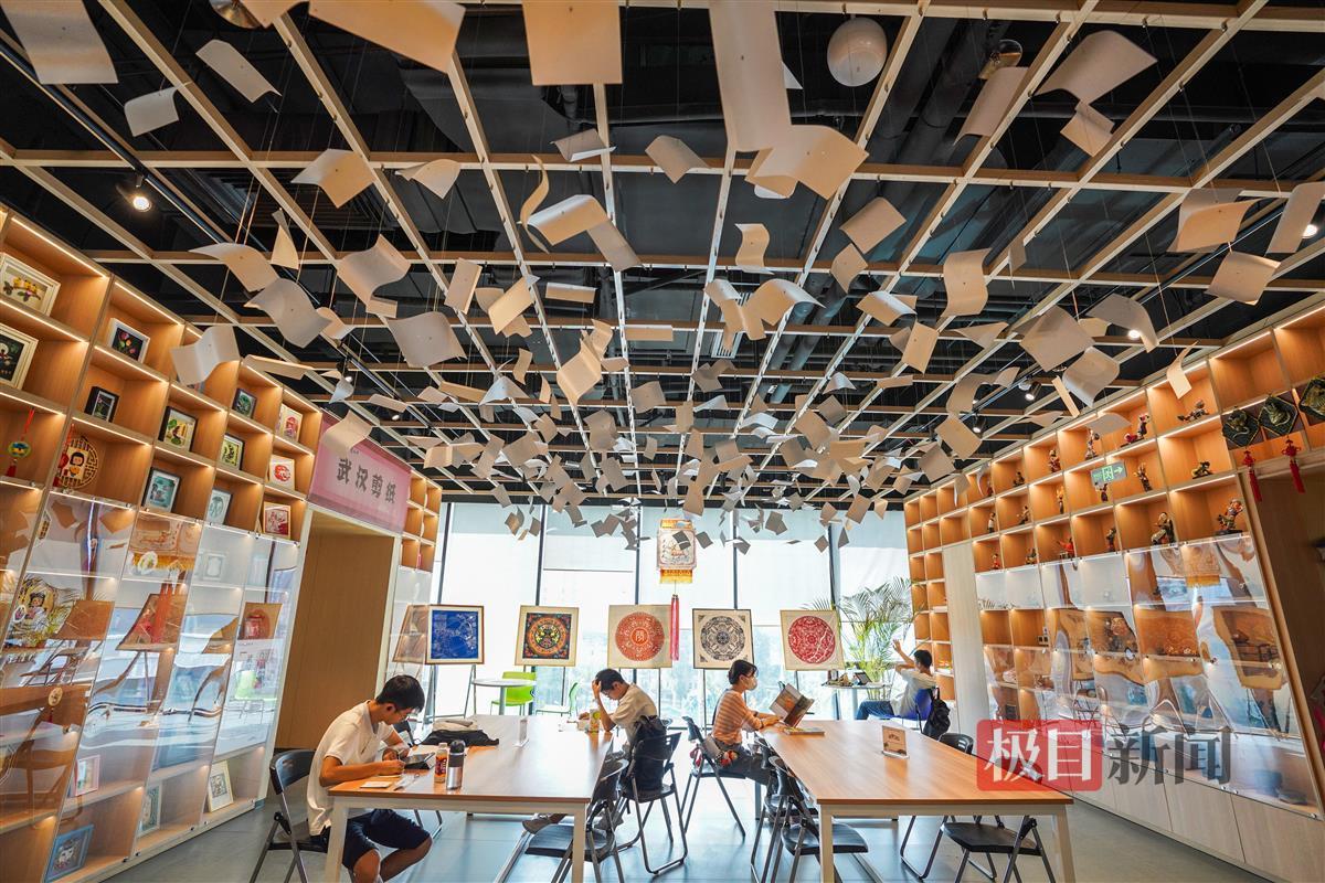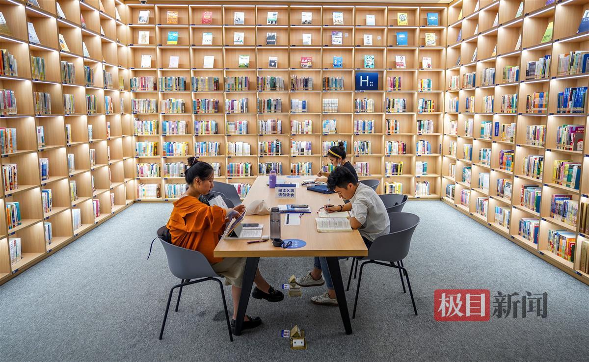 武汉市青山区图书馆始建于1978年8月,今年4月刚开放的新馆搬进了青山区最大、最热闹的商圈“武汉印象城”,成为了武汉新一座文化地标建筑。10月1日,极目新闻记者探访武汉市青山区图书馆。青山图书馆一共有三层,一楼为24小时城市书房,不打烊向读者提供阅读服务。乘坐电梯可直达3楼和4楼。记者乘坐电梯来到了四楼,映入眼帘的便是一排排原木色的木制书架,馆内有不少青少年在此学习,还有一些家长带着孩子在这里,俨然成为了亲子活动好去处。市民李女士正陪着女儿在图书馆公共阅读区的沙发上看书,李女士说,女儿喜欢青山图书馆的环境,主动提出假期要来青山图书馆。而在另一处活动室内,正在举办名为“云朵的课绘本手工活动”,房间内的朗读亭里一位家长陪着孩子录制节目。
