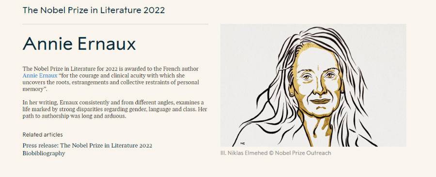 10月6日,法国当代著名女作家安妮·埃尔诺(AnnieErnaux)夺得2022年度诺贝尔文学奖桂冠。