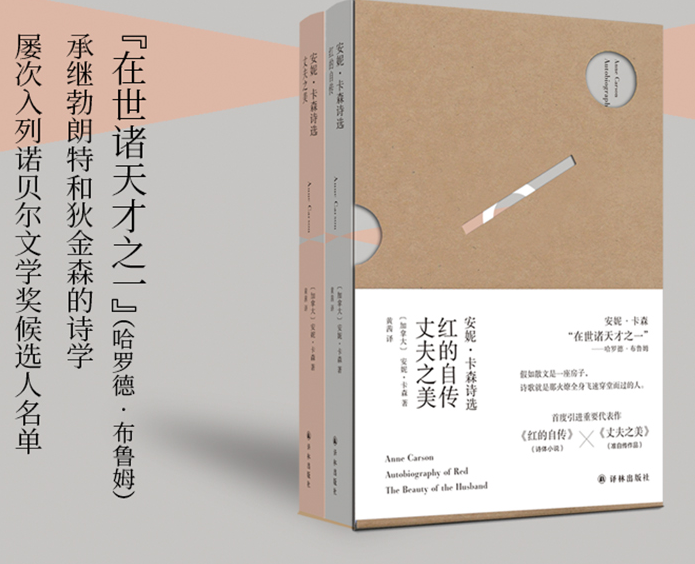 安妮·卡森代表作有《红的自传》《丈夫之美》等。《红的自传》给希腊神话中的革律翁改写了人生轨迹,长着红色翅膀的少年和他的红色世界,折射出纯粹的美与灵性,它是一幅深刻感人的肖像,讲述了一位艺术家如何坦然面对自己异于常人的身份。