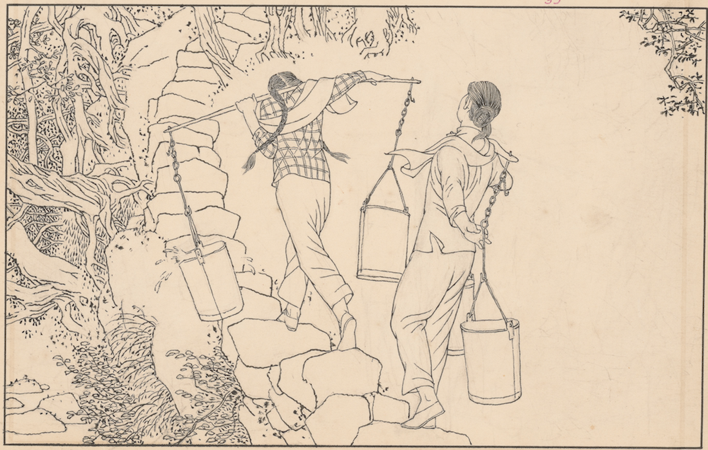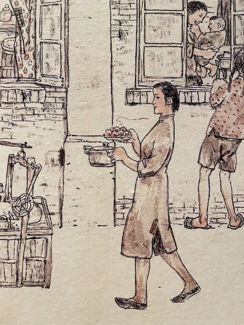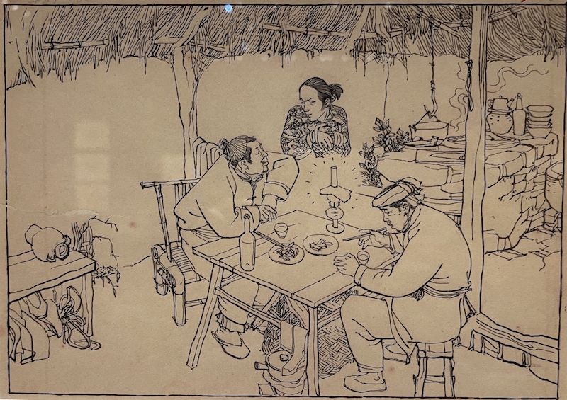 可以说每每贺先生出一部作品,都有其发人深省的闪光点,就看你捕不捕捉得到。比如《杨根思》里上海老弄堂被画得那么接地气,杨根思捞吃阳春面,隔壁阿婆包打听的样子⋯⋯像极。《李双双》不谈了,应该是在《山乡巨变》之后画的,线条玩的更溜,关键是线条的弹性和线条疏密形成的形式感,在这本书里小道具的学说达到了顶峯。《穆汉祥》里一个大学生地下党员缺乏社会经验,囊中羞涩的样子,交大边上的吃食摊,均被一一刻划出来。问题是那些在文本里都是没有的,贺先生肚子里有太多的“画外音”。《孙中山伦敦蒙难》是贺先生早年作品,也是我的珍藏。画的味道真足啊,南洋,香港英式巡捕房,绅士派头的孙中山⋯⋯罄竹难书。