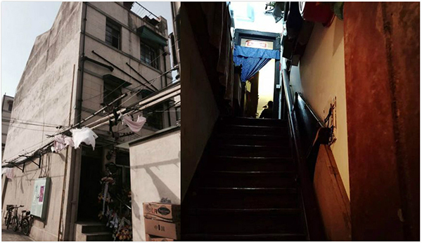 贺友直位于上海市区巨鹿路弄堂里的狭窄楼梯与老屋