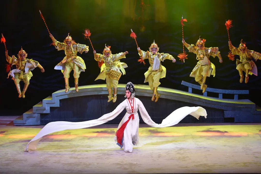 白蛇传的故事相信大众都已耳熟能详。新编粤剧《白蛇传·情》在传统剧目《白蛇传》的基础上进行了创新和发展,选以“情”为主线贯穿全剧,通过匠心独具的艺术手法,给人青春靓丽、浪漫唯美的艺术享受。舞美设计简练立体,充分运用平台空间营造出不同的效果,更贴合现代年轻人的审美需求。白素贞与小青两位女性形象也更符合当下,独立并且敢爱敢恨,“法海”不再是非黑即白的“大反派”,而是懂得普通人的情感。
