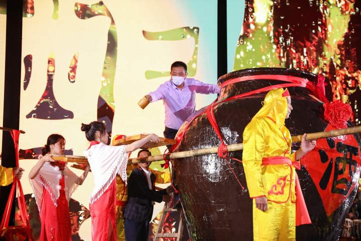 在母岭隧道桂花酒窖,有这样一副对联:“深酿露华,村墟静好生涯稳;偕藏桂醑,石室熏酣岁月宽。”中国文化里,诗酒不分开。母岭村的特产是桂花酒,闭幕式上,村民抬出了五百斤大酒缸,舀出了今年的开缸酒,款待四方来客。
