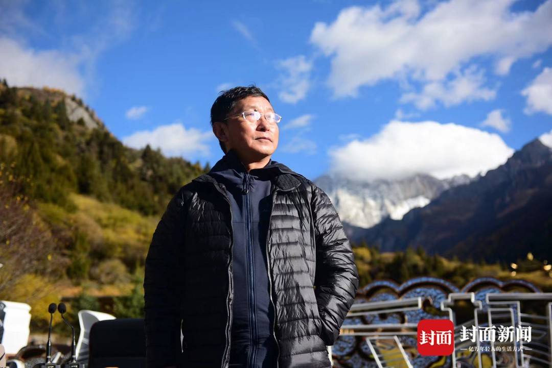 当天的讲座地点在四姑娘山山脚下,海拔3000多米的露天讲台背后就是巍峨高耸的幺妹峰。气温微凉,天空如海子一般湛蓝,冰川融化的河水哗哗流过。阿来“杜甫成都诗”系列讲座首次走出成都,直奔这处人间仙境,让现场观众和收看直播的网友都非常激动。