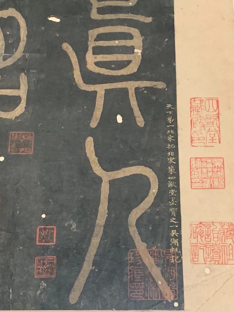 《许真人井铭》,吴湖帆以泥金小字题写“天下第一北宋拓北宋装,四欧堂墨宝之一”
