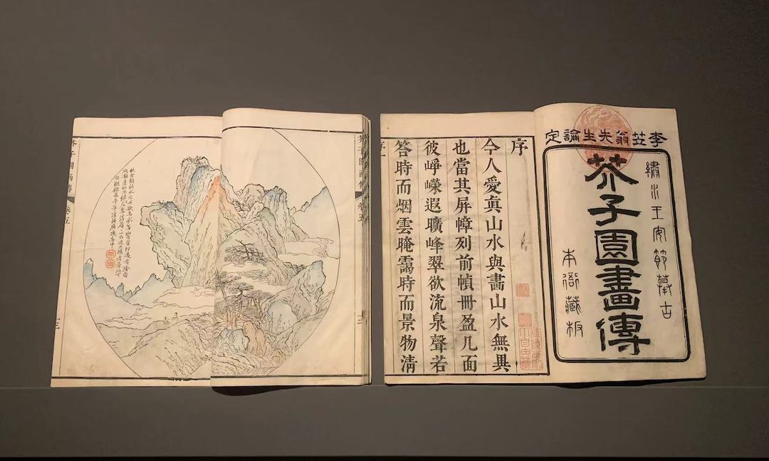展览也涉及了公众喜闻乐见的题材。比如明万历四十四年(1616)何璧刻本的《北西厢记》,并展示了首页“摹仇英笔”的崔莺莺像;清康熙十八年(1679)刻套色《芥子园画传》,显示了中国传统套色木刻技艺。