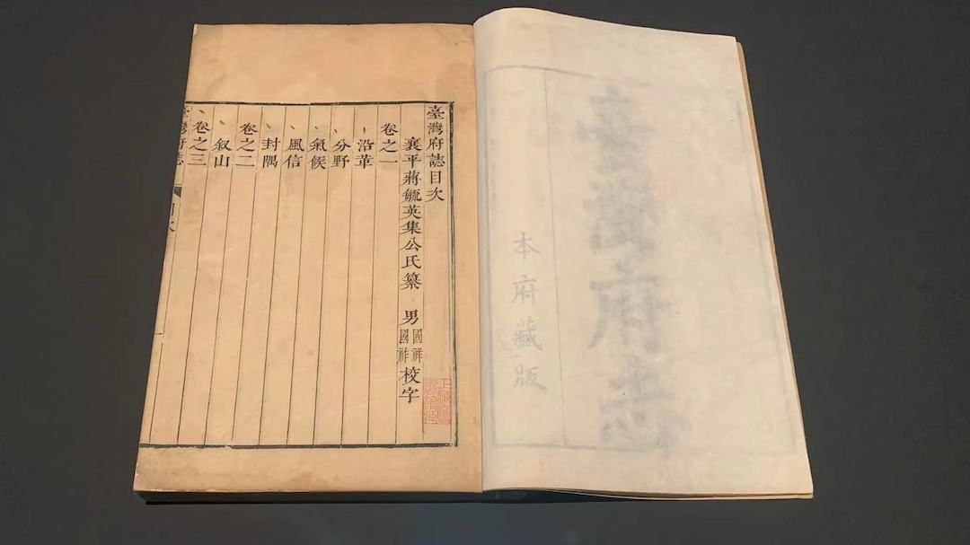 另如《会通馆校正音释书经》、《法兰文字》记录了印刷方式的更迭和文化的交流。《台湾府志》为上世纪五十年代从废纸中抢救而来,直到1975年上图重检故纸时才得以重见天日。在这本蒋毓英编修的《台湾府志》发现之前,中外学者都认为康熙三十一年高拱乾撰修的台湾府志》为最早。上图的这一发现改变了学界的认定,其中一些资料在其他志书中未曾记载,具有很高的史料价值。