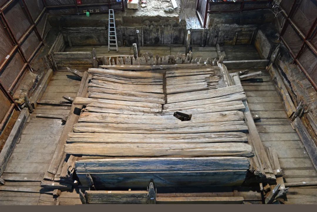 按照汉制,官员获得爵位后,就可以给自己建造墓穴。刘贺就任海昏侯以后,选择了给自己建造地下宫殿。考古发现,刘贺建造墓穴所使用的木材都很厚实,直到今天,这些木料历经2000多年都没有腐烂。刘贺用这些木料建造的地下宫殿,上面又夯实了十来米高的封土,不可谓不结实。能够让如此结实的墓室垮塌的,应该就是东晋年间那场强度很大的地震。
