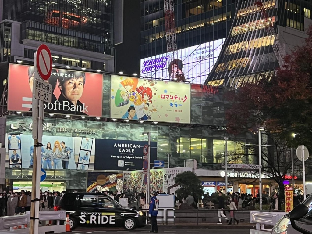 东京街头常有动漫广告展出(总台记者林博翰摄)