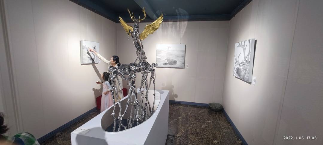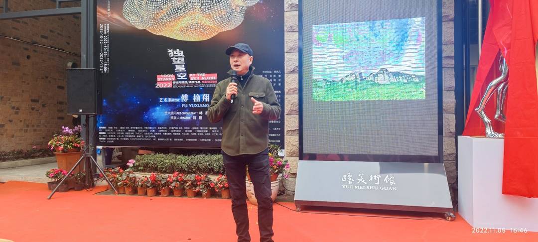 11月5日,由四川省美协雕塑艺委会、四川省美协油画艺委会、四川省古玩收藏协会主办的“仰望星空·傅榆翔雕塑/油画作品巡回展成都站”在浓园艺术区的躍美术馆举行。现场展出了傅榆翔的70件作品,其中包括雕塑作品29件、油画作品41件。这位艺术家有着天马行空的想象力,他把《山海经》里的奇珍异兽和太空元素进行无缝对接,这些脑洞大开的作品让观众大开眼界。