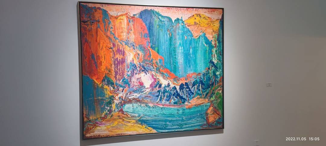 此次展览除了“梵高”系列,尹朝阳的“嵩山”系列也受到艺术迷的热捧。尹朝阳曾长期深入嵩山采风写生,甚至喜爱那里过着一种与世隔绝的生活。于是他以一种直面自然的方式,展开了他作为艺术家个体的山川之旅与自然体悟。此次在成都展出的那些关于嵩山的画作中,尹朝阳同样用浓烈的色彩描绘了中国这座知名度颇高的大山。