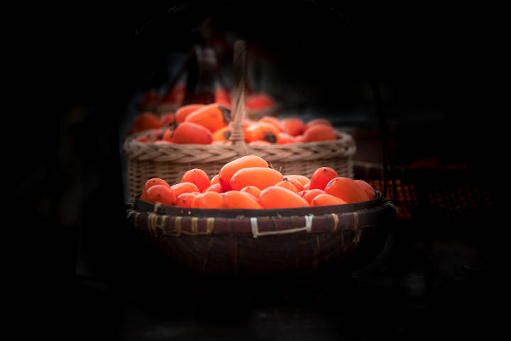 听大人们说,这杮子不是自然熟透的,是建德佬用了一种土方法催熟的。据说他们在山壁侧面上下挖两个洞,上面的洞紧挨着下面的洞,但不挖通。在上面的洞里垫上黄草,把青的、黄的柿子摆在上面,用湿泥巴封住洞口,然后在下面的洞里添柴烧火,加热烘烤。加热到一定时候,把上面的洞口打开。最令我惊骇的是,打开之后,要在杮子上面泼一瓢尿,再封上洞口加热,然后取出杮子。经过这样特殊工序的杮子会更红更亮,卖相更好。
