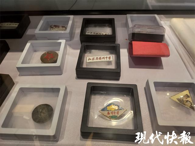 本次展览,以时间为轴,跨度从扬州中学仪董学堂时期(创办时期)到上世纪七十年代,展品有毕业证书、聘书、教材、徽章、同学录等。