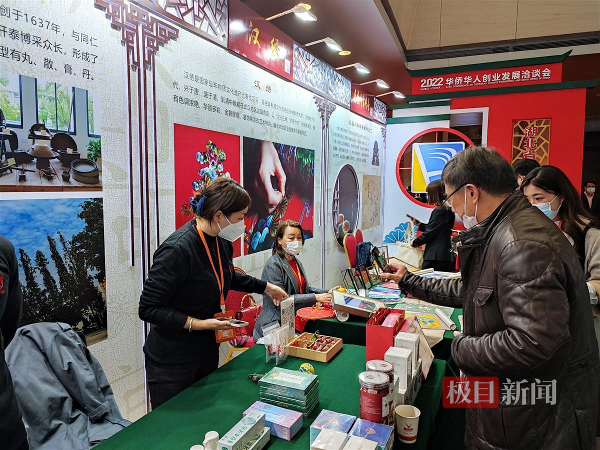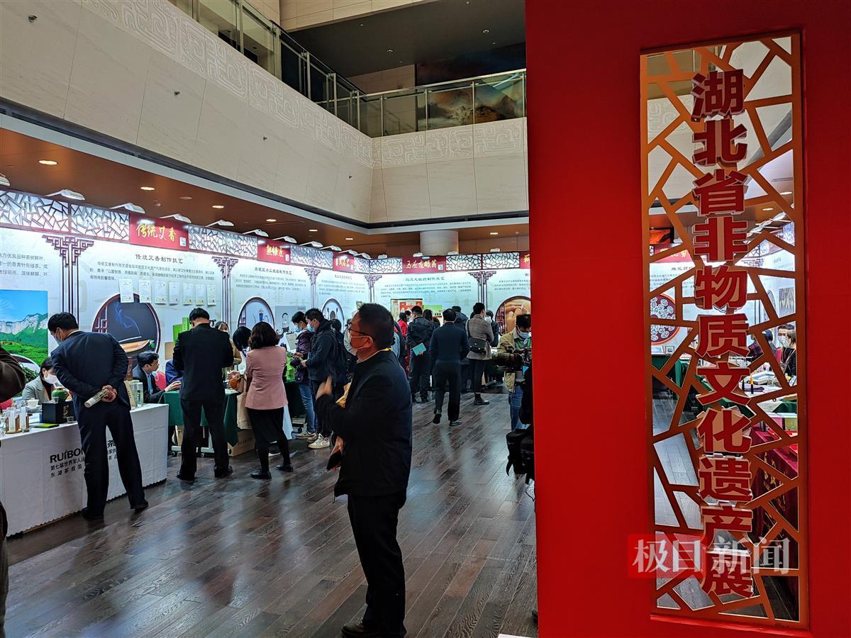 由湖北省人民政府、国务院侨务办公室、武汉市人民政府共同主办的2022华侨华人创业发展洽谈会(以下简称“华创会”)正在武汉东湖国际会议中心举行。作为华创会特邀专场活动之一,华创会首次增设的湖北省非物质文化遗产展于16日亮相东湖国际会议中心黄鹤厅。