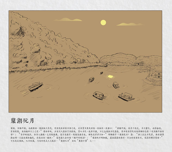 鼎湖玩月:鼎湖,即临平湖,也称东湖。鼎湖风光秀美,特别是在星疏月朗之夜,泛舟赏月更是别有一番风情。沈谦曰:“游临平湖,莫美于夜泛,月光灵爽,水影沦涟,置身其间,真有镜中天上之叹。”旧时中秋,多有文人墨客买舟游湖,赏玩月色。从唐至清,不乏咏鼎湖月色诗篇,其中较有特色的有唐朝权德舆《夜汎临平湖有寄》:“素彩皓通津,孤舟入清旷。已爱隔帘看,还宜卷帘望。。隔帘卷帘当此,惆怅思君君不知。”明朝苏平《鼎湖夜月》诗:“湖上涓涓月色浮,无穷清景满沧州。光摇波浪孤轮夜,影落山河一镜秋。”还有清人俞作梅《临平竹枝词》:“鼎湖秋月明如镜,芦荻萧萧两岸村。月合惜侬侬惜月,夜深空照读书墩。”可见夜泛鼎湖,玩月赋诗,乃为历代文人之风雅。“鼎湖玩月”亦为“东湖十景”之一。