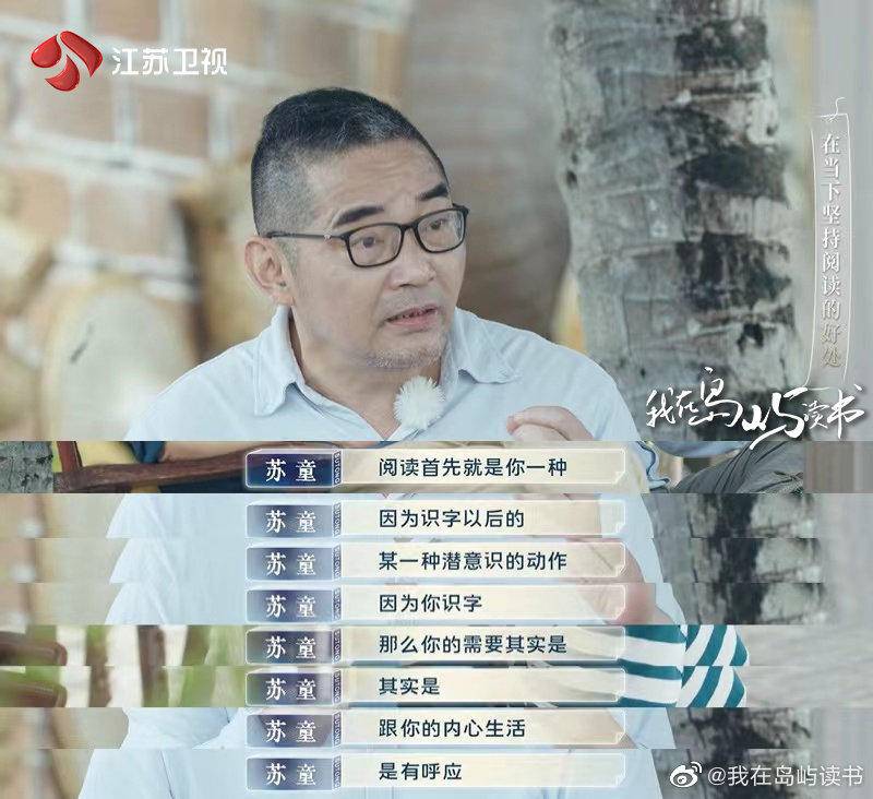 《我在岛屿读书》在风景迷人的海南分界洲岛打造了一座远离喧嚣的岛屿书屋,邀请到余华、苏童、西川等文坛老友相聚于此,陪伴观众开启一场面朝大海的书香之旅。节目介绍称,这些大咖作家在这里生活、相处、读书、读诗、写作,享受阅读带来的乐趣和意义,以身体力行的阅读生活方式示范,积极响应“倡导全民阅读”的主旨。