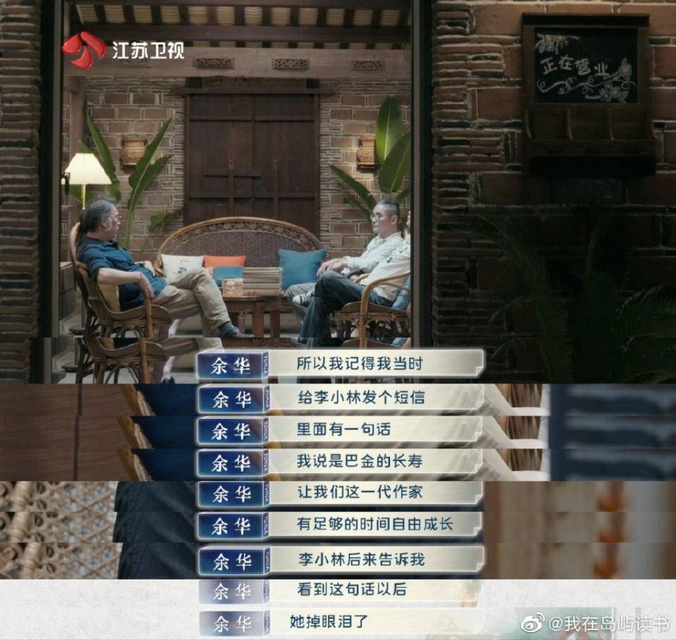 节目中,苏童、余华、西川等作家的任务是在岛屿书屋里值班,但他们不是普通的管理员,怎么摆书、怎么挑书、怎么读书,顺口一讲就是学问。西川一看书屋的唐诗宋词,就自动摆出了自己心目中的顺序,把苏东坡等人的作品按顺序放好,他说一排排的书摆在哪里应该是有自身结构的。三位作家也直抒胸臆抢着为书屋取名字,西川取了个很有禅意的名字“转念书屋”,苏童认为就叫分界书屋即可,并解释称“分界”的意思是让人从嘈杂、忙碌的生活中挣脱出来。