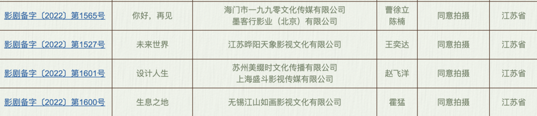 今天,国家电影局网站发布了关于2022年8月全国电影剧本(梗概)备案、立项公示的通知。记者注意到,本期备案立项的故事影片共120部,江苏有4部。尤其值得一提的是,刚从第35届金鸡奖摘得创投主单元“评委会优胜项目”和“最具潜力导演”的《大地之子》(现名为《生息之地》)也在其中,备案单位来自无锡。