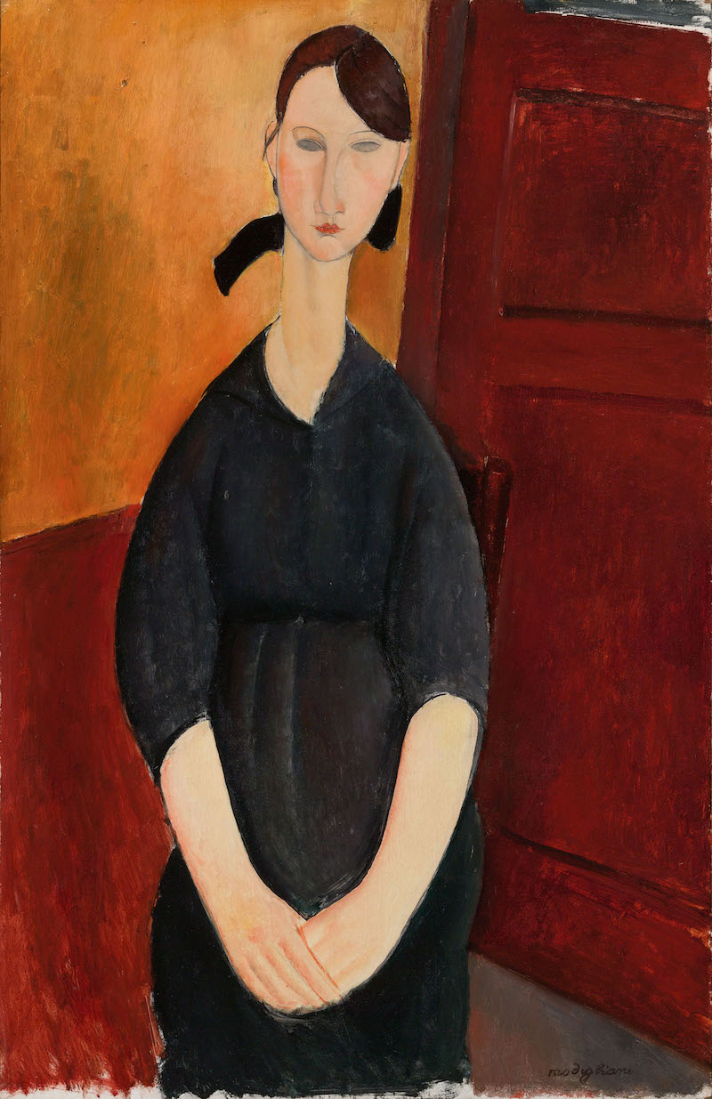 阿梅代奥·莫迪利亚尼(意大利,1884-1920),《宝丽特·茹丹肖像》,约1919年,布面油彩100.3x65.4cm。“龙美术馆十周年特展”展品。