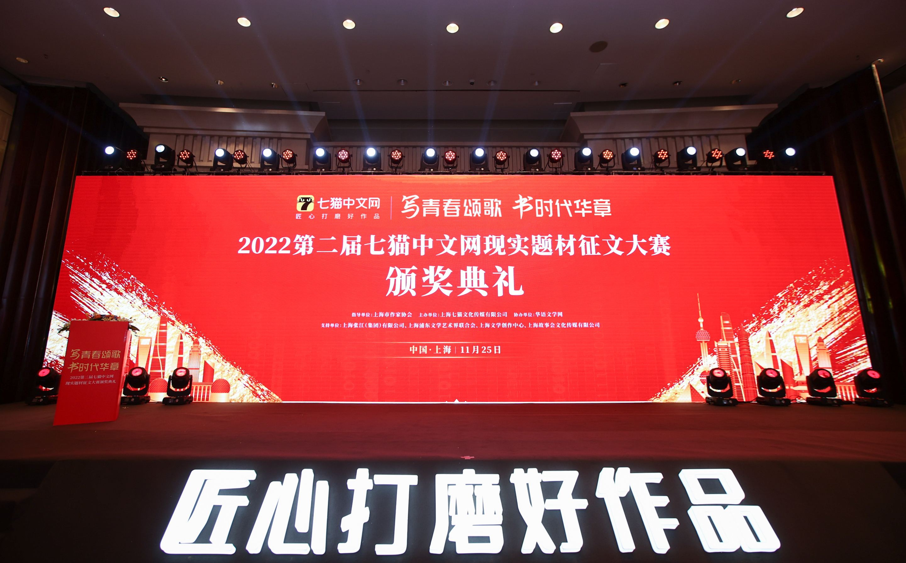 11月25日,由上海市作家协会指导、上海七猫文化传媒有限公司(以下简称“七猫”)主办的“2022年第二届七猫中文网现实题材征文大赛”颁奖典礼在上海举行。大赛希望通过评选优秀作品的方式,推介一批用情用力书写中国故事,呈现青年一代风貌特质的现实题材小说。