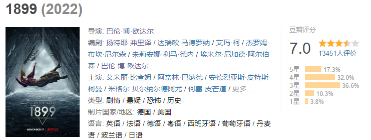 《1899》目前的豆瓣7.0评分(一路下降)