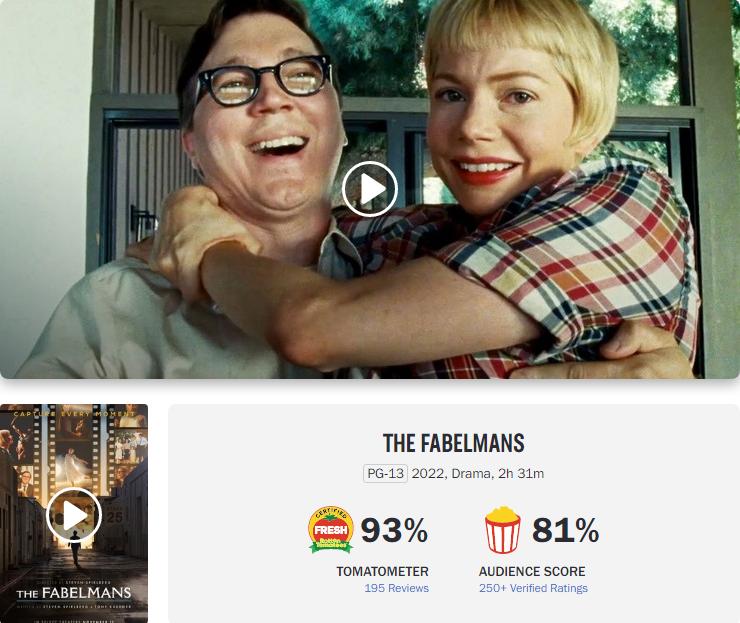 另外,由环球影业出品、大导演斯皮尔伯格的新片《造梦之家》(TheFabelmans)也在感恩节档期正式与北美观众见面。这部温暖人心、与节日氛围十分契合的半自传作品,此前便已在纽约、洛杉矶两地总共四家影院小规模点映,赢得了相当不错的先期口碑,“烂番茄”上的影评人好评度和观众好评度分别达到93%和81%。到了感恩节周末,该片终于杀入全北美638家影院与更多观众见面,结果只获得220万美元周末票房,成绩相当糟糕。