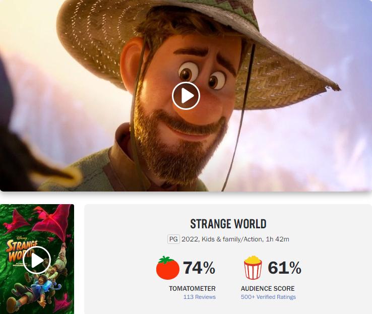 《奇异世界》在“烂番茄”上的影评人好评度目前只有74%