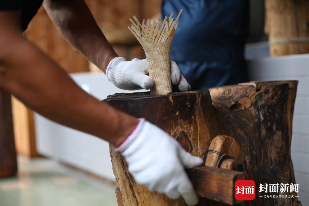 “南路边茶的制作,总结起来就是一大核心、两大要素、三个阶段、五大工艺以及若干程序。发酵是南路边茶制作的核心。两大要素就是鲜茶和工艺。茶叶一定是要新鲜摘取,陈茶和购买的干茶都不行。经过采茶、鲜茶制作、分选成型三个阶段,再通过‘炒蒸揉发烘’五大工艺和若干道工序,才能制作完成。”在时间的打磨中,南路边茶也跟随着时代的变化,有了制作方法上的改变。甘玉祥介绍,在传承南路边茶的制作过程中,祖先传下来的五大工艺是绝不能够改变的,这是保证茶叶质量的关键。但是追求更科学的方法,也是有必要的:“以前都是堆在地上发酵,既不卫生,品质也不高。现在我们采取了滚筒发酵的方法,但工艺上保持不变。这既科学地改进了制茶方法,也使工艺得到了有效的传承。”