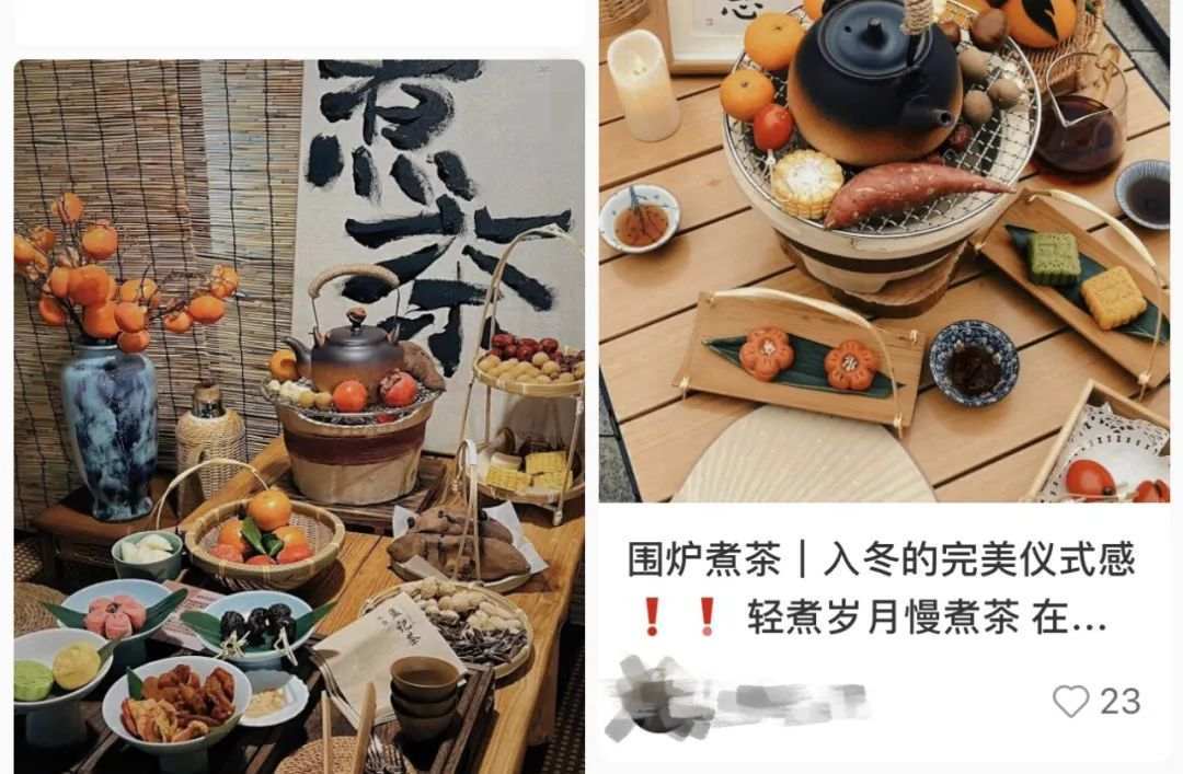 同时,年轻人的社交需要也在“围炉煮茶”中被满足。好友们聚在一起,吃零食喝茶侃大山,享受“偷得浮生半日闲”,这本身就是在社交。当“围炉煮茶”在朋友圈被热议,你无论是拍照出片上传,还是加入到周围人的讨论中,社交场合的共同话题掌握了,社交密码也就拿捏了。