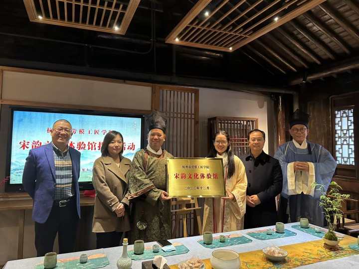 昨天下午,浙江省杭州市总工会劳模工匠学院领导亲临南宋酒艺馆,参加市劳模工匠学院宋韵文化体验馆揭牌仪式。