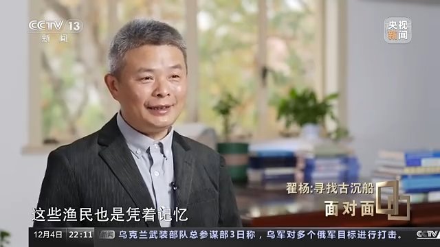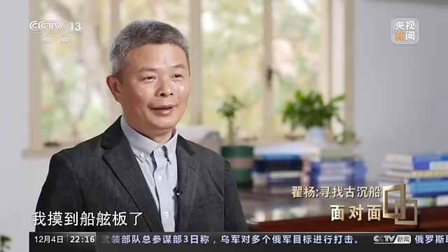 翟杨:我当时说的时候心也有点虚的,我给大家打气,因为大家还是要鼓鼓气。我记得很清楚,打捞局的褚师傅经验非常足。最后一班是他下水,很快,大概也就半个多小时,说这肯定是一条木船,我摸到船舷板了,但是不是现在的木头船,还是以前的木船都不知道,因为确认一条古船,实际上在水下很难的。