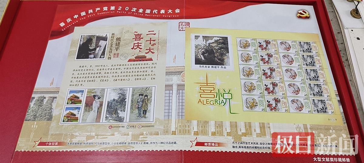 12月5日,武汉市新洲区高级艺术师熊建平收到组委会寄来的邮票样品,他的《秧歌》《大别山写生》《红色旅游线》等13幅书画作品被《奋进新征程 建功新时代》邮册收录。