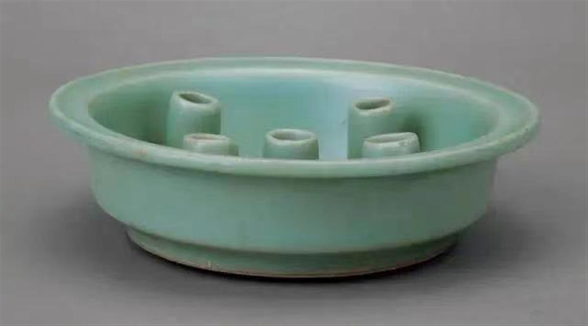 龙泉窑豆青釉五管瓷花插