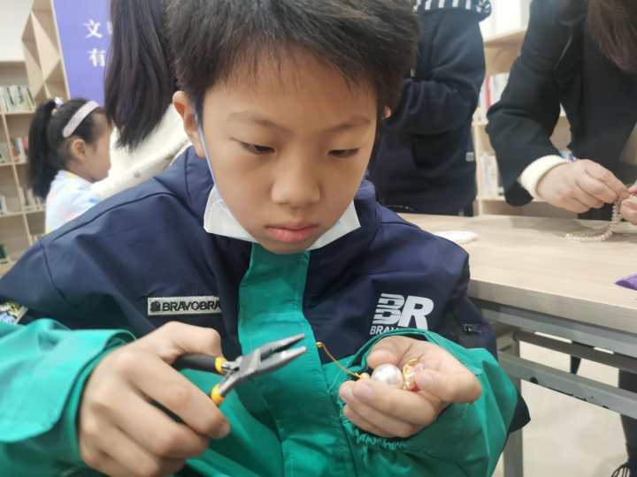 大家在老师的悉心指导下,认真学习挑拣、扯线、串珠、塑形等步骤。很快,一个个有模有样的“刀马旦头饰”就呈现在眼前,让大家内心充满了成就感。