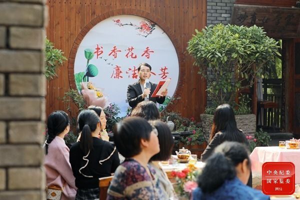 重庆市长寿区纪委监委注重营造廉洁的社会环境和社会风气,努力发动全社会广泛参与,推动形成新时代廉洁文化建设的强大合力。该区持续开展廉洁文化建设进机关、进村居、进企业、进校园、进家庭“五进”活动,建好干部群众喜闻乐见、独具特色的廉洁文化阵地。图为近日,该区纪委监委机关在长寿古镇举行“书香花香廉洁芬芳”读书分享活动。(重庆市长寿区纪委监委供彭俊华摄)