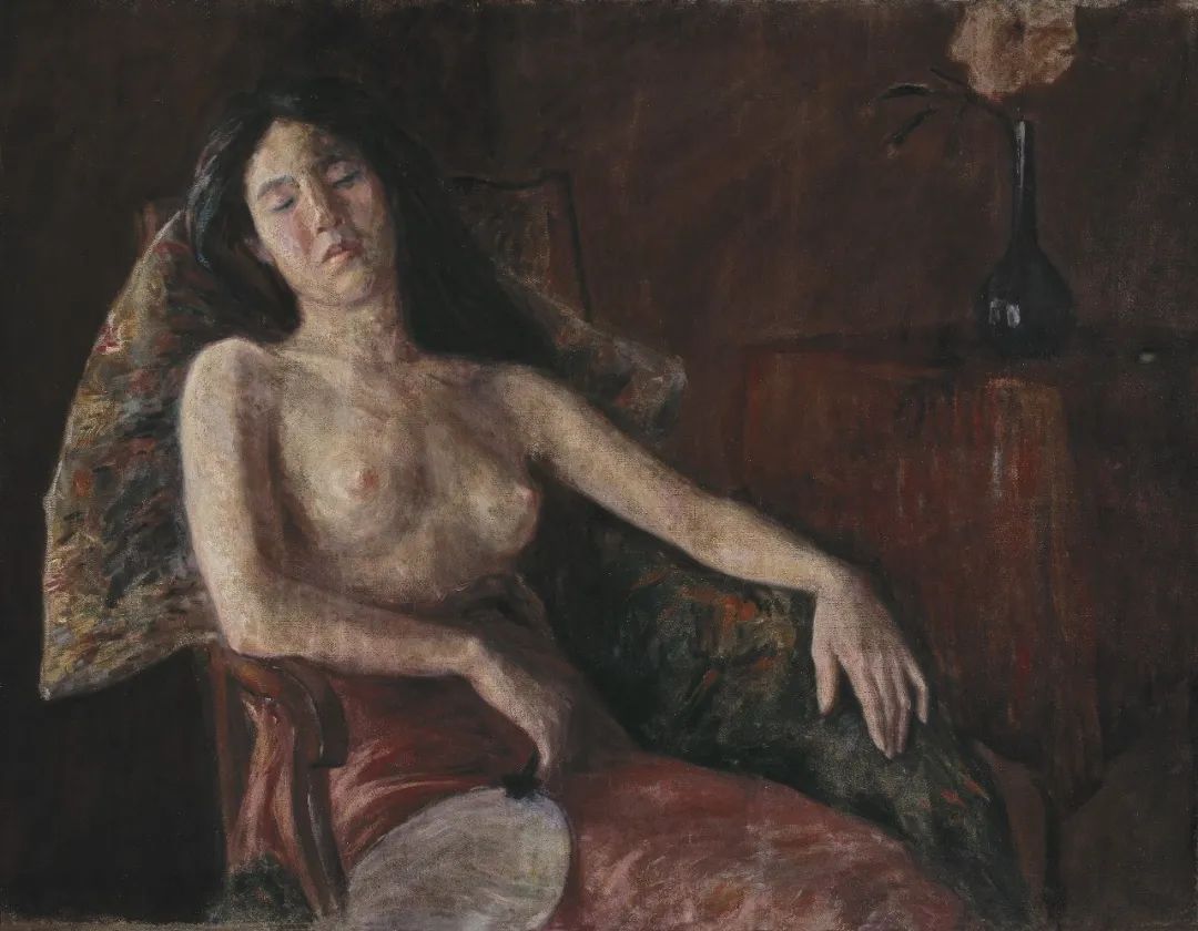 李叔同《半裸女像》约1909年作修复后中央美术学院美术馆藏