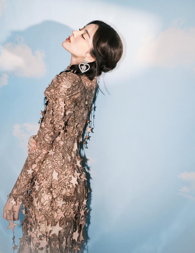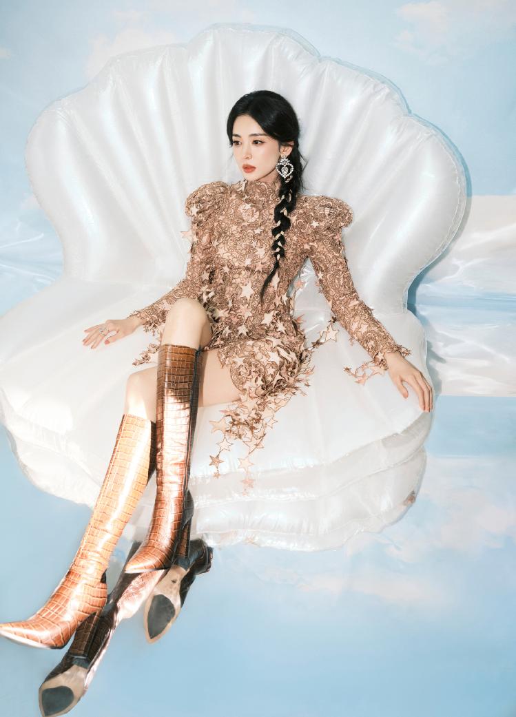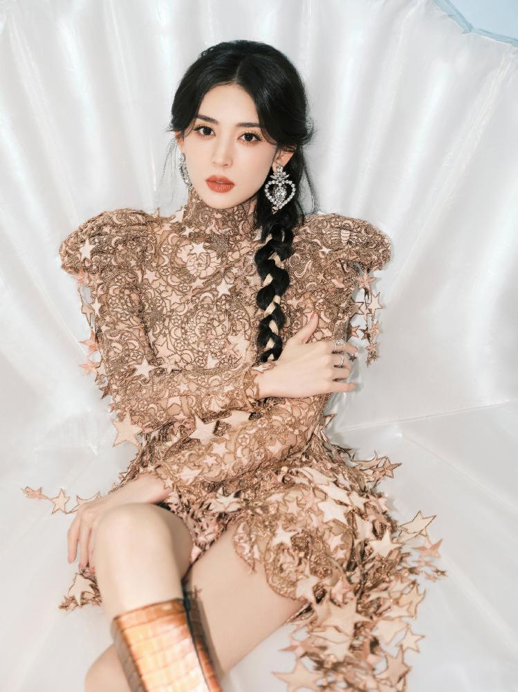 14日,一组娜扎新照曝光。她身穿金棕色星光裙搭配长靴,梳编发造型十分俏美,一双大眼闪烁迷人。