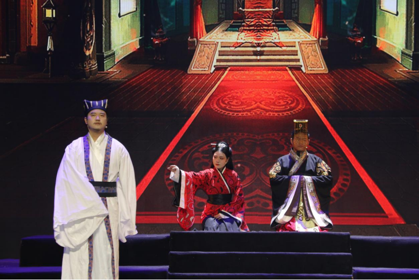 作为“沫若文化年”系列活动的重要篇章,《世纪鼎堂——沫若诗文戏剧演绎》分为六个章节,包括话剧《屈原》《蔡文姬》《虎符》、诗歌《女神》《天上的街市》《雷电颂》等片段。整场演出以“讲述人”的视角,将郭沫若生平创作的优秀戏剧、诗歌等作品内容片段进行串联创编而成,同时对其生平亮点进行逐一展示演绎。