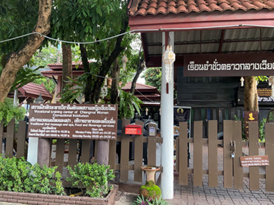 我后来再次造访该地的时候才注意到在这片工地的对面街角处有一座小小的“金殿”(HoKham,北部泰语中常指国王的大殿),里面供奉着孟莱的雕塑。殿外的铭牌解释说该区域曾经是孟莱的王宫所在地。孟莱在700多年前的宫殿位置其实未必是这片区域,但这里是16世纪以来清迈的统治中心是基本确定的。