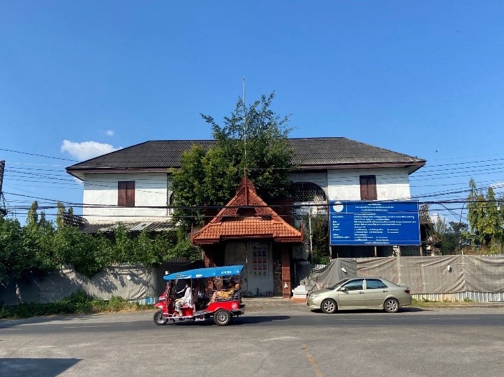 泰语资料显示,清迈的旧王宫名为“万考”(WiangKaew,Wiang意为城,Kaew意为玉,直译为“玉城”)。该地位于清迈市中心,这里更曾经是一间女子监狱!2012年,女子监狱搬离此地。2016年以来,泰国艺术部先后主持了对此地的两次考古发掘,出土了一批瓷器等文物。按照规划,这里会被建成一座公园,计划2022年完工。到了现场我才发现,我2019年年底第一次来访清迈的时候曾在万考旁边的“女子监狱餐厅”吃过饭。当时的我还不知道我对面的这片工地居然是我后来苦苦找寻的清迈旧王宫遗址。现在这间餐厅已经因为疫情关闭了。因为疫情的耽误,计划中的公园也还停留在纸上,这里实际上至今仍是一片荒地,被严密地遮挡起来,其中残存的一栋建筑物应该是以前监狱的一部分。我绕围墙一周,好不容易找到一个门缝,拍下了如下一幅照片。