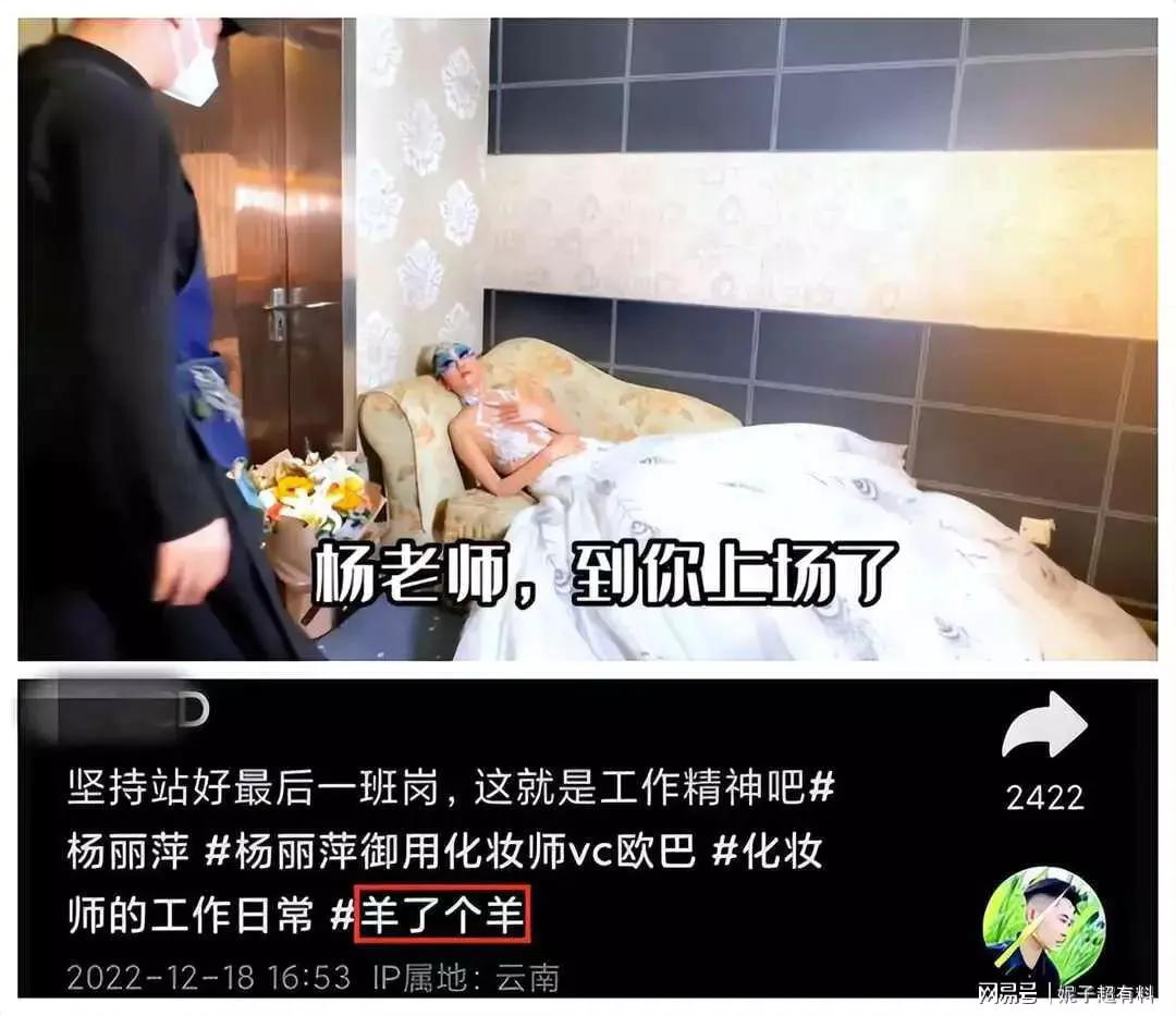 杨丽萍最近带着2022版舞剧《孔雀》全国巡演,12月18日巡演至最后一站——江西南昌。从化妆师晒出的视频来看,杨丽萍的身体状况像是很糟糕,躺在沙发上咳嗽不断,感叹自己头沉、嗓子嘶哑,但也不失幽默地吐槽说:“孔雀爪子”怎么那么重,连抬起胳膊的力气都没有,举不起来,怕是跳不了了。当工作人员问:“要不退票不演了”,杨丽萍“蹭”地一下从沙发上站起来,直言“哎,那怎么行啊”,接着匆忙起身往外走,因为步子不稳还踉跄摔倒。