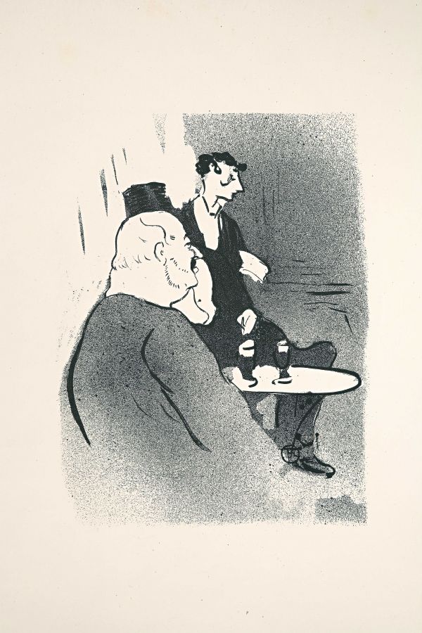 更为令人印象深刻的是,贵族出身的罗特列克在画作中没有任何主观高低贵贱的鄙夷。他曾说:“我描绘事物的本来面目。我不加以评判。”尽管他会用流畅的线条勾勒出夸张的人物肢体语言和面部表情并加以嘲讽戏谑,但无论是歌舞明星的光芒四射还是应召女郎的微不足道,他都客观真诚地记录着他们的本色。罗特列克接过大量的商业委托工作——不仅是海报,还有书的封面和插图,舞台装饰设计,乐谱的封面,不过无论作品的主题是什么,画面的主角总是一个“模特”,要么是和他相熟的朋友,要么是他喜爱的歌手和演员,人永远是他迷恋的创作主题。