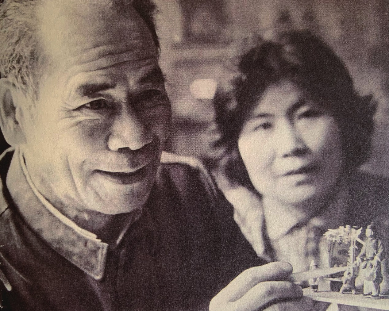 在厂甸做的这件作品成了我父亲最重要的作品之一,后来又根据这个改成一个拉洋车的,上面坐着一个妇女,手里拿着两大串糖葫芦,后背还压着一个十个轮的大风车,虽然没写着是厂甸,但叫人一瞧就是刚逛完厂甸坐着洋车回家了。那之后,“面人郎”的美称就到处传开了。——郎志丽